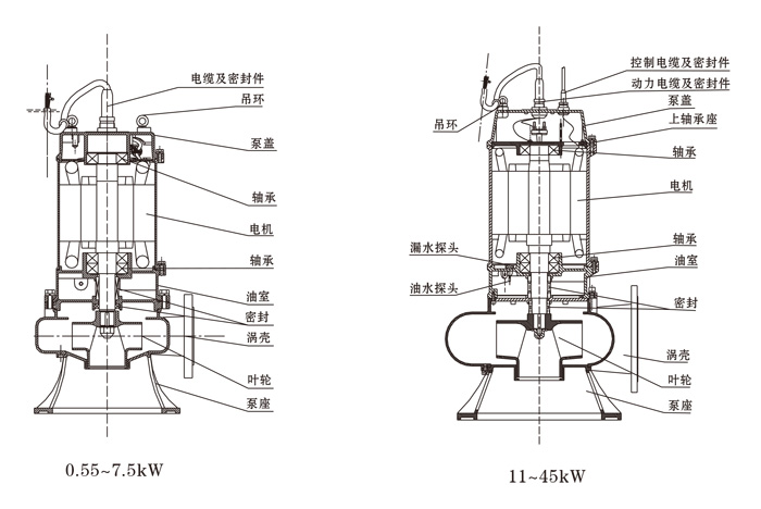 2、無內(nèi)自流循環(huán)冷卻系統(tǒng)的泵,電機(jī)部分露出液面不得超過電機(jī)的1/2.
